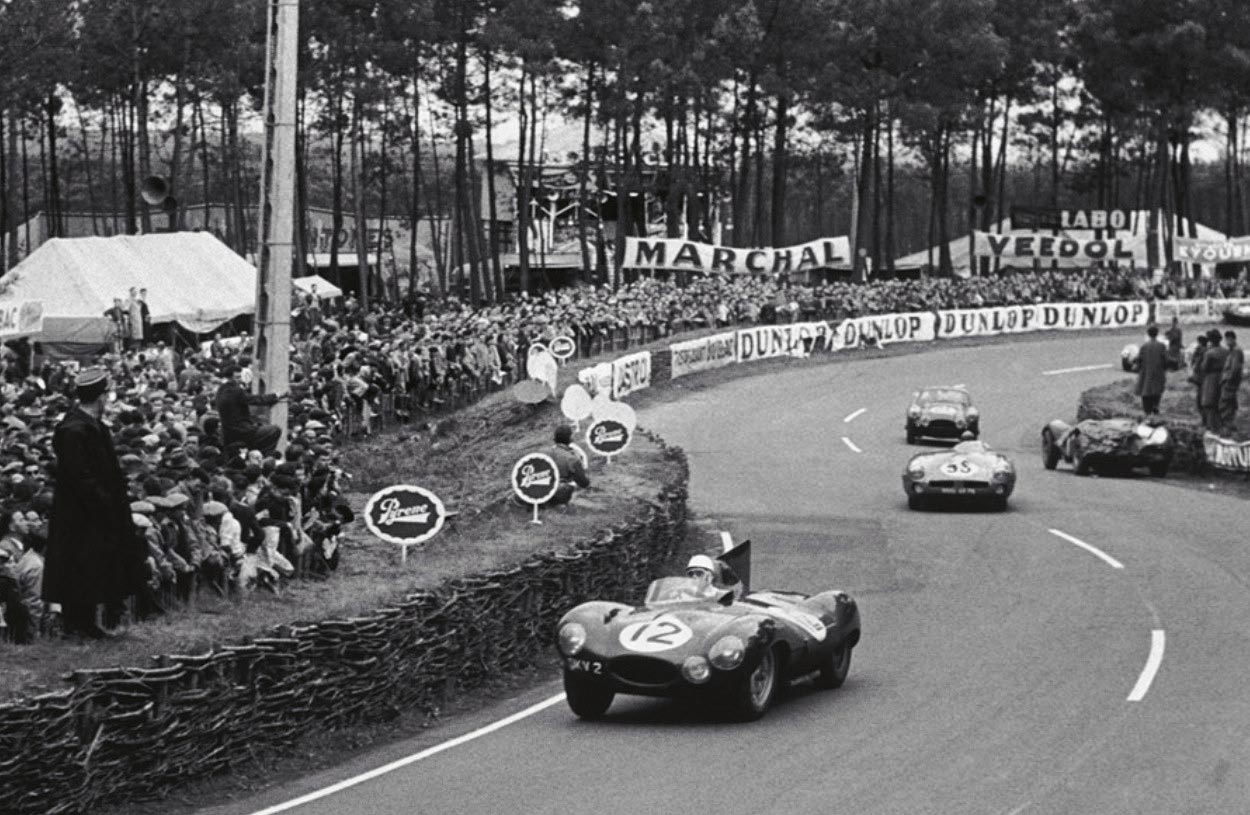 Der Jaguar D-Type war das dominierende Auto in Le Mans Mitte der 50er Jahre. Seine Aerodynamik wurde wegweisend. Insbesondere die Versionen mit der bei hohen Geschwindigkeiten stabilisierenden Heckflosse wirkten wie Jagdflugzeuge auf der Straße. Auch seine damals konkurrenzlose Höchstgeschwindigkeit von 280 km/h oder mehr auf der sechs Kilometer langen Hunaudières-Geraden in Le Mans begünstigte die Erfolgsserie dort wie auch die Siege auf anderen Tempostrecken wie beispielsweise Reims oder Silverstone.