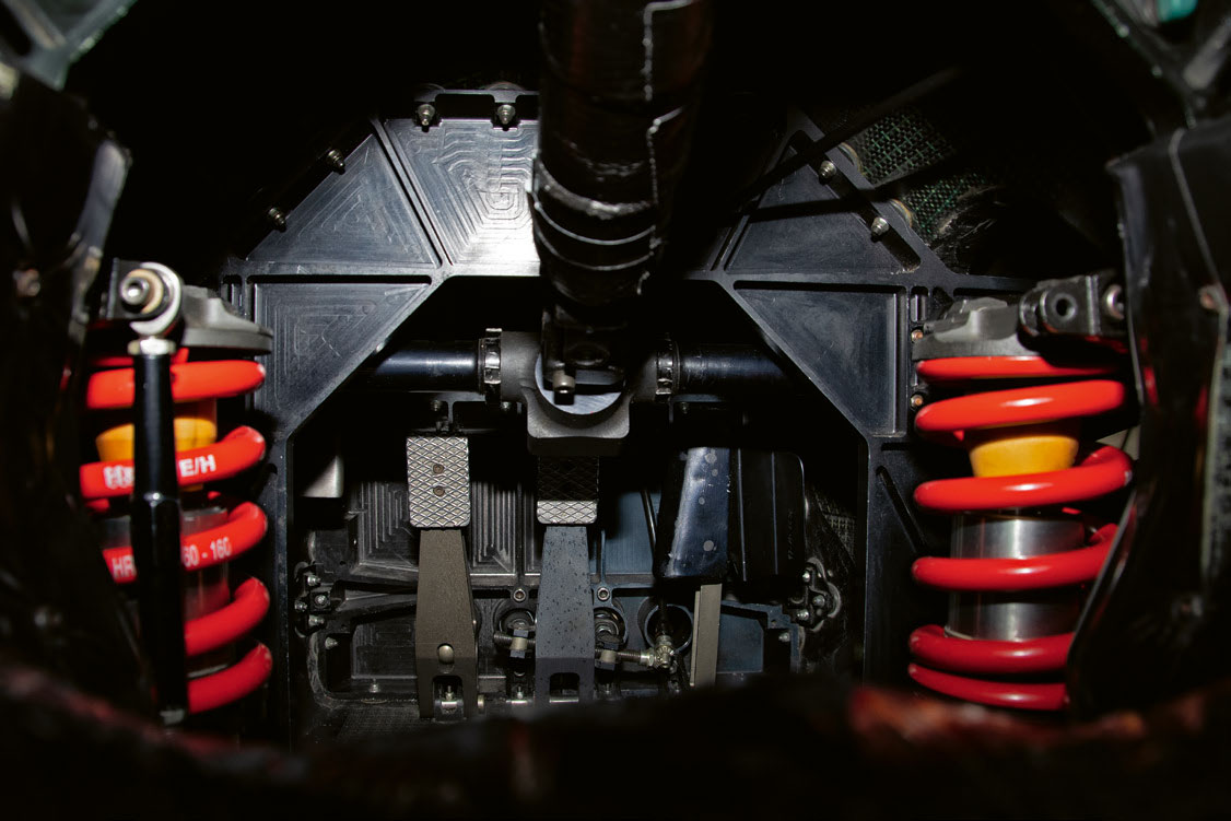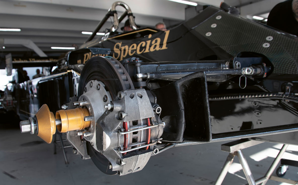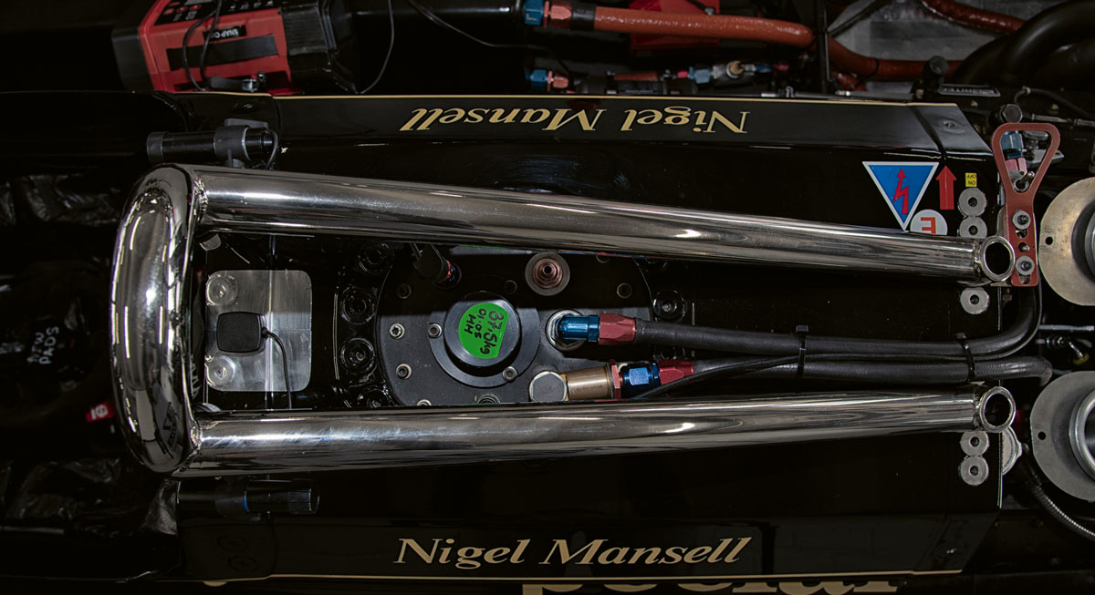 1981 startete Lotus mit Nigel Mansell noch mal mit dem Lotus 81 in die Saison. Elio de Angelis sollte mit der neuen Wunderwaffe, dem Lotus 88, antreten, der wurde aber umgehend als illegal eingestuft und so startete auch de Angelis im Rennen mit dem Lotus 81. Mit dem Lotus 88, dem berühmten „Doppelchassis“ wollte Colin Chapman einen weiteren Geniestreich in die Formel 1 bringen. (siehe Curbs #46) Doch bei beiden Auftritten wurden die 88er nach dem Training verboten. Beim zweiten Anlauf in Silverstone wurde erneut nach dem Training der Start verweigert. Nach dem endgültigen Verbot des Lotus 88 wurden in einer Nacht- und Nebel- Aktion beide 88er zum Modell Lotus 87 umgebaut. Der von uns gefahrene Lotus 87/4 war ursprünglich in Silverstone Elio de Angelis Lotus 88B /4. Er hat also zwei Chassis-Nummern und zwei „Leben“…