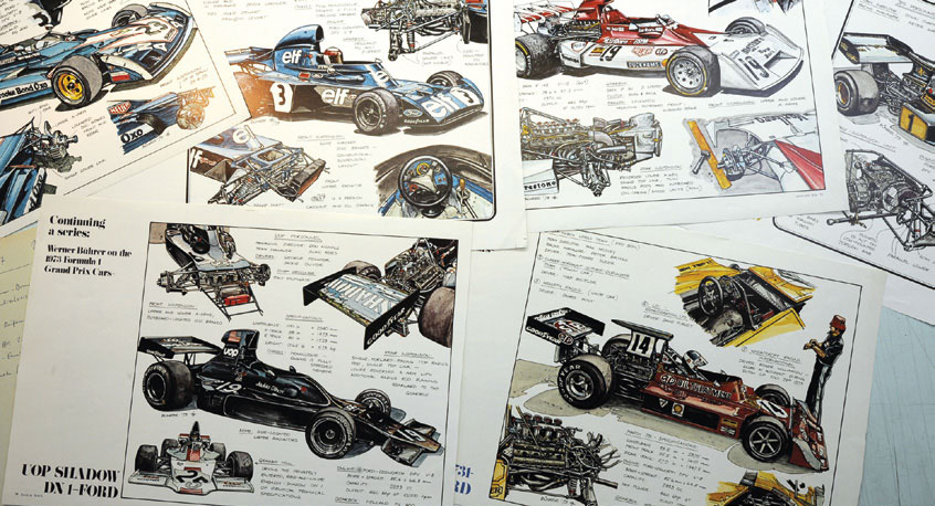 1962 folgte der Sprung nach Köln ins Styling-Center von Ford, daselbst ein Paradies für Bü, wo er in Bezug auf Darstellungstechniken von den Arbeitskollegen so viel lernen – und auch selbst praktizieren – konnte, dass für ihn mehr und mehr Wunsch und Gewissheit wuchsen, die zeichnerischen Fähigkeiten weiteren Kreisen zugänglich machen zu wollen. Sprich: Der nächste Schritt war, Kontakte zur Fachpresse zu knüpfen, um letztendlich mit publiziertem Material den Veranstaltern von Grands Prix zu beweisen, dass Bü durch die Vergabe eines Presse- und Fotografenausweises Zutritt zu den Boxen ermöglicht werden sollte.