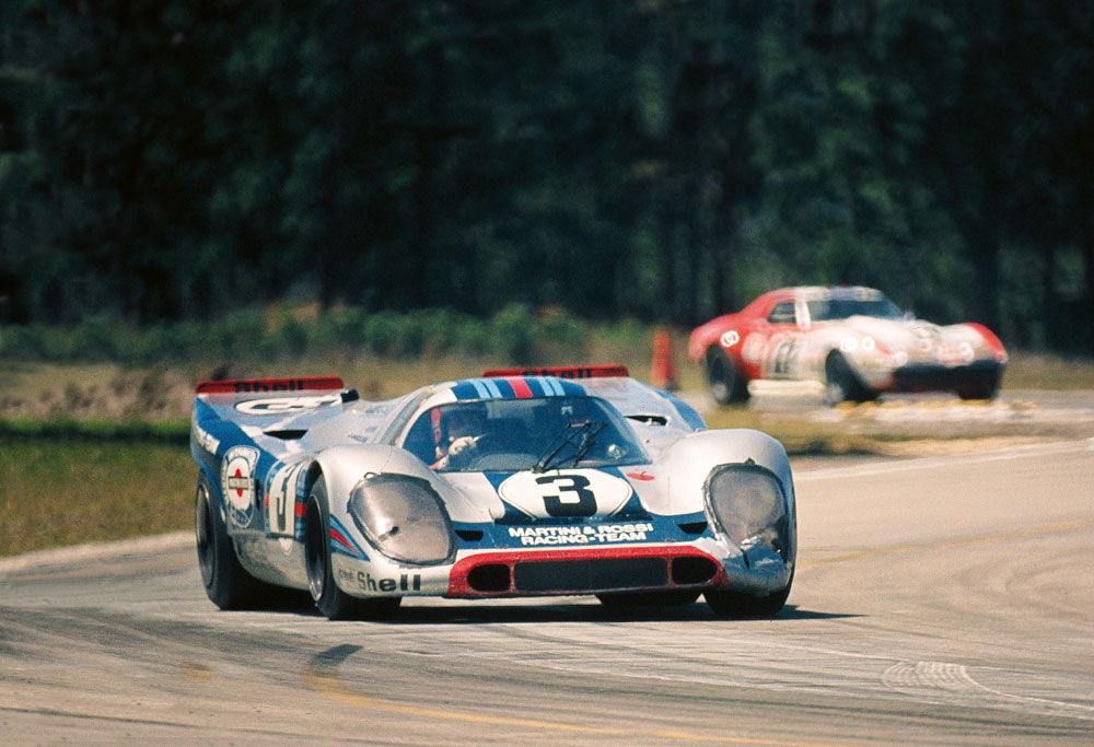 Für Daytona 1968, dem ersten Marken-WM-Lauf nach einem neuen Reglement zugunsten der Dreiliter-Prototypen und Fünfliter-Sportwagen, war Porsche bestens aufgestellt. Der führende Porsche von Vic Elford und Jochen Neeerpasch erhielt Zuwachs von Rolf Stommelen, Jo Siffert und Hans Herrmann, die ebenfalls vorn gelegen hatten aber mit technischen Problemen eliminiert worden waren. Als Quintett vereint, durfte der Gesamtsieg unter der Sonne Floridas gefeiert werden. Schon im Training zur Targa Florio hatte Vic Elford seine Überlegenheit demonstriert und den von ihm und Umberto Maglioli pilotierten Porsche 907 vor dem Wagen von Jo Siffert und Rolf Stommelen und dem schnellsten Alfa Romeo 33 der Kombination Dr. Nino Vaccarella/Udo Schütz platziert. Reifendefekte, gelöste Radmuttern: eine unendlich lange erste Runde für Vic Elford. Mit 17 Minuten Rück-stand nahm der Brite das Rennen wieder auf und markierte laufend schnellste Runden, ehe er Umberto Maglioli für rund anderthalb Stunden das Volant überlies. Inzwischen herrschte unter dem Jubel der Zuschauer Alfa-Time, wenn auch ihr Liebling Nino nicht mehr fahren konnte, weil Udo Schütz von der Piste gerutscht war. Doch dann kamen die Stunden des Vic Elford, der über sich hinauswuchs und in der vorletzten Runde die Führung übernahm. „ Nach der Zieldurchfahrt wurde mir fast schwarz vor Augen, so fertig war ich“, gestand Vic später. Dass er nur zwei Wochen später mit Jo Siffert auch das 1000-Km-Rennen auf dem Nürburgring gewann, vor dem 907 von Herrmann/Stommelen und dem Klassensieger der Sportwagen, dem GulfFord GT40 von Ickx/Hawkins, hat ihn weniger in Anspruch genommen. „Hat mich tierisch gefreut, auch für die vielen Porsche-Mitarbeiter, die zum Ring gepilgert waren.“ Diesen Ringkampf-Triumph wiederholte Vic 1970 und 1972.