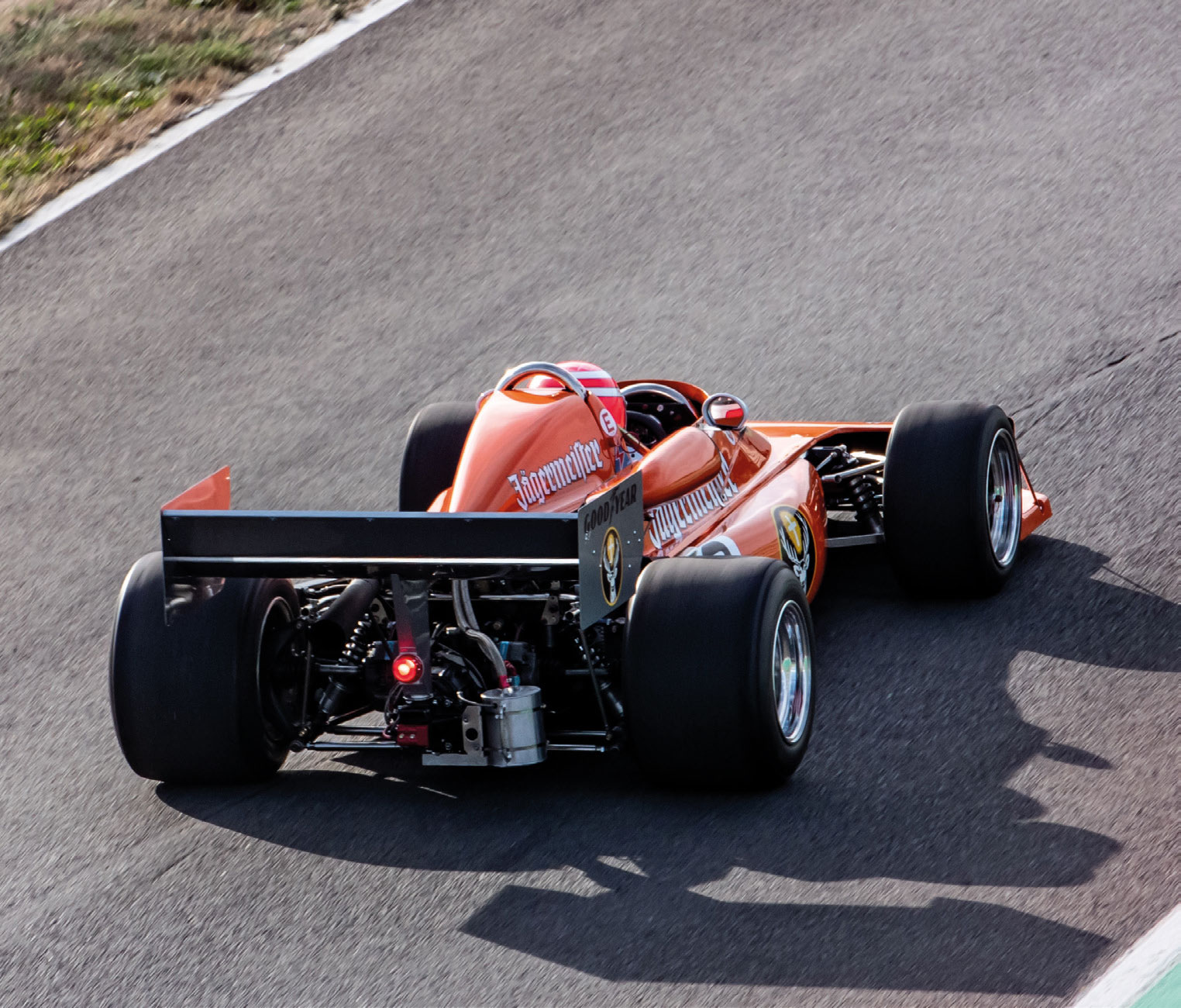Ich folge dem „Langen“ aus der Boxengasse heraus. Es ist fast ein bisschen wie im Kino-Film „Rush“. Nur dass die Emotionen doch um ein Vielfaches höher sind als im Kino. Auch der Sound liegt mir mehr im Ohr als jeder Cinema-Dolby-Surround-Klang. Trotzdem hat es manchmal eher das Flair eines „Rush“-Filmes als eines der Realität – vor mir im Formel 1 einer meiner alten He-ros, und ich folge ihm im March-Formel-2, mit solchen Autos wurde er ja „König von Hockenheim“. Jochen Mass bewegte einen solchen 772p-BMW und siegte 1977 damit beim „Jim Clark Gedächtsnisrennen“ in Hockenheim und beim Eifelrennen Nürburgring – genug Geschichte also, die mir dieses Auto erzählen könnte. Jetzt höre ich aber erst einmal in seine Technik hinein. Optisch kommt er dem vor mir fahrenden March Formel 1 sehr nahe. Die Front ist fast identisch, und auch der Heckflügel weist ähnliche Dimensionen auf. Schon auf den ersten Metern bin ich überrascht, wie harmonisch dieses Auto ausgelegt ist – ruhig beim Anbremsen, das Getriebe lässt sich sauber schalten, der Motor hat einen guten Dremomentverlauf, der March lässt sich gut in die Kurven bringen und hat auch eine gute Traktion. Auf den ersten Blick oder für das erste Gefühl ist das ein Traumauto.